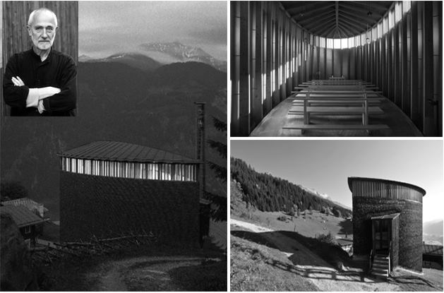 The above images are of Saint Benedict Chapel, Sumvitg, Graubunden, Switzerland, 1988. This small Chapel is considered as one of his masterpiece and one of the most important selected designs for the Pritzker prize, 2009.