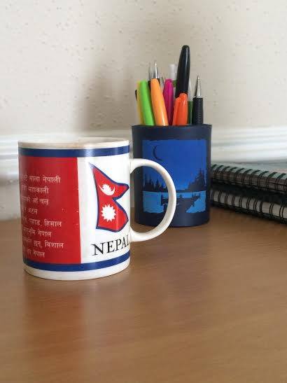 But still, this cup, flag on it and national anthem bring courage, it reminds me of where I belong to. I am thankful to those Chinese hands, who had designed this cup. The designer has profound knowledge of colors, he has beautifully arranged three colors red, blue and white. I have faith in these colors, someday sun will rise differently and I will find myself in between my hills. I treasure this notion and my heart!! Like always it has won the wars of emotions and saying to wait for it………….