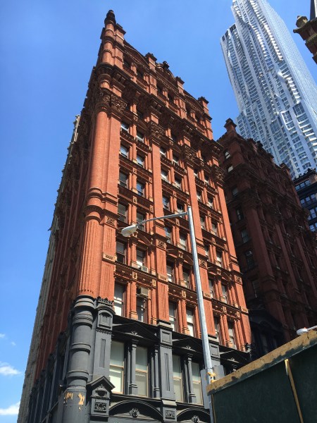 The building in the background is one of the famous in New York, perhaps in the world, designed by Frank Gehry. I wouldn’t consider it an overrated building and do not have any bitterness against it. It indeed is a tribute to New York skyline. But my eyes stuck at this traditional neo-gothic building. I know nothing about this building nevertheless, there are too many “things” to observe/contemplate… At that moment, it was not just me standing and observing it but the building itself interacting with me, explaining its intrinsic values. A very well defined curvilinear edge, scales of the windows, and façade treatment… it gives the feel of growing; like a living organism and the building is respiring through its detailing. The proportional and harmonious variation from top to bottom has a strong visual impact. Staying out of just an individual idea, it looks like more about design and an architectural attempt at true meanings. Which is definitely missing in Gehry’s apartment design; which is standing as a faded metal post.